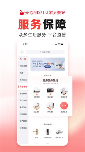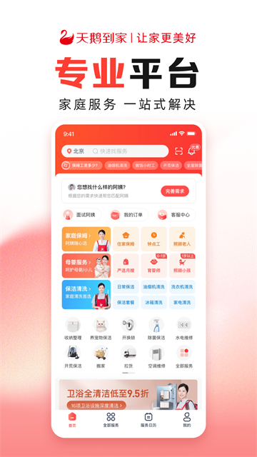 天鹅到家极速版是58同城推出的一款生活服务类应用,它够让你轻松享受各种优质的生活服务,从衣食住行到美云学,多种多样的优质服务让你足不出户,就可以享受到生活的便利。另外天鹅到家极速版中的服务是以多元化的方式呈现的,其中家政保洁、保姆月嫂、搬家以及速运等1000余种专业、高效、安全的家庭优质服务,天鹅到家极速版还采用了精准的智能推荐,可快速匹配适合你的劳动者,告别告别多分次预约的繁琐模式。