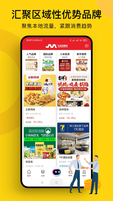 v1.8.8全球加盟网是一款非常好用的品牌加盟平台,在这里用户可以选在你自己喜爱的品牌进行加盟,并提供1对1的专业服务,打造双向的价值共赢平台。该平台会通过品牌评估师实地考察、深度调研,确保项目真实性,帮您分析验证品牌盈利能力,为客户降低了大量的决策时间和决策风险,提高了创业的质量,同时拥有平台认证《盟信通》助力加盟,给你更好的创业体验,让您无忧创业。另外,支持全城人气商铺、商场入驻,支持区域、行业、商铺门面类型、面积、装修风格、租金、商铺租售转让等多维度筛选,便于管理,帮助创业者一站式快速对接创业开店商铺需求,打造出一个更快捷高效、更优质的平台。有需要的朋友可以前来下载体验一下!