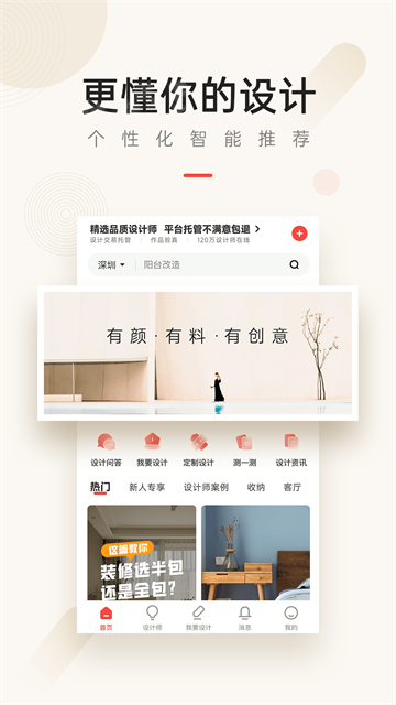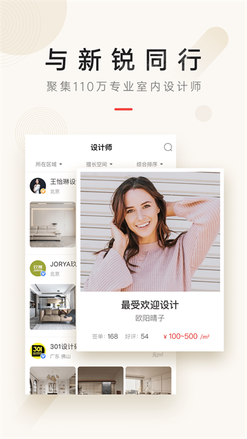 4、找设计师:130多万设计师汇集,专属客服即时响应,助您找到满意的设计师,轻松搞定高品质装修