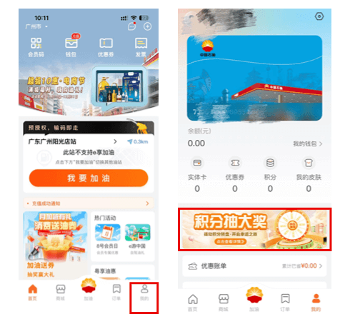 积分抽奖位置:中油好客e站App-我的-积分抽大奖