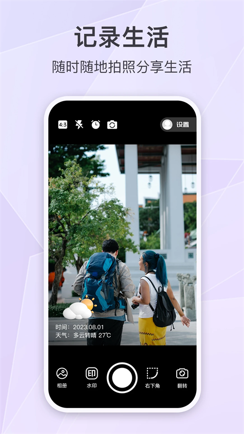 定制时间水印相机免费版是一款非常适合拍照打卡的摄影拍照软件,它很适合旅游打卡以及工作打卡所使用,它会在拍摄好的图像中加入时间、地点、日期等水印信息,对标北京时间,精准锁定当前地点位置,你甚至还可以添加一些文字,软件可以自由编辑和修改水印的内容,充分满足日常工作和生活的需求,轻松记录美好生活,打卡考勤和记录生活两不误。