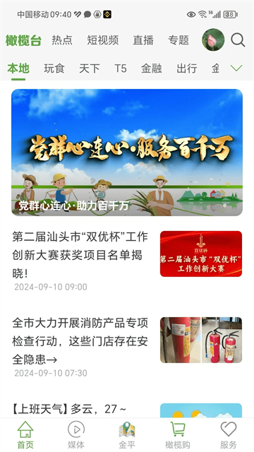汕头橄榄台是由汕头橄榄台、CUTV城市联合网络电视台共同合作并倾力打造的一款新媒体平台客户端。软件集新闻、政务、民生、电商等综合业务,并以图片、文字、音频、视频等多种形式和作品。软件每日收录了海量实时新闻资讯,以CUTV网络电视台为资源基础,提供各种内容资源和技术资源,从而降低了新媒体平台建设成本和运营成本。软件整合了城市管理资源,将政府、企业、市民之间搭建了一个非常便捷的相互沟通平台。方便用户对广播电视节目点播,以及各类文书和信息查询与浏览。也方便政府机关向每位用户发布紧急、权威的新闻资讯。