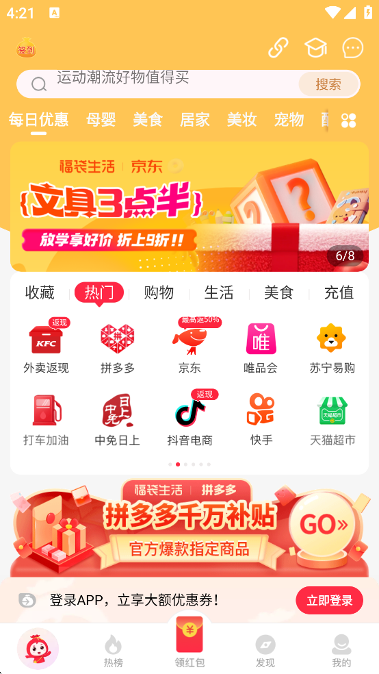 每天精选小于6块的超值商品,白菜券轻松领,剁手不花钱;