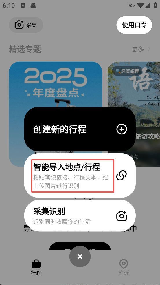 发现or看到喜欢的攻略,不管是链接/图片还是文字,即刻丢进圆周旅迹,智能解析提取行程地点,勾选后自动生成最优路线,不必费心整理,旅行抄作业蛮有一套。