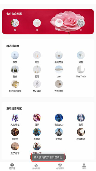 4、就可以看到充电提示音设置成功;