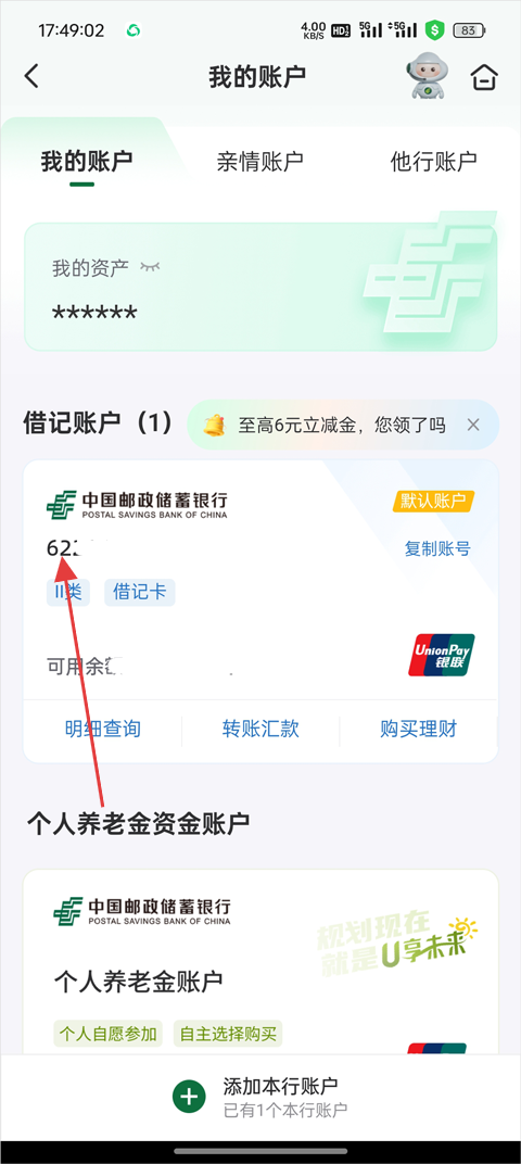 邮储银行App怎么查开户行