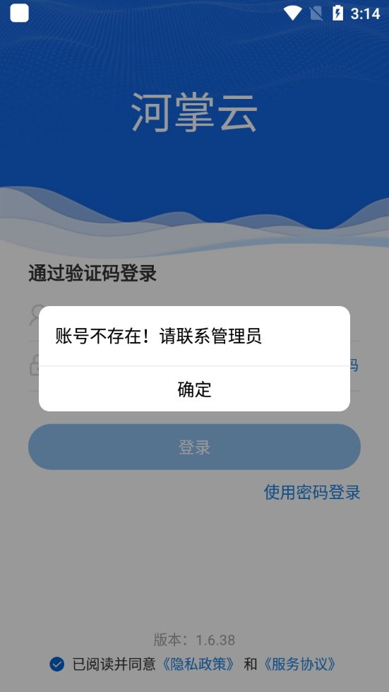 2、如果出现账号不存在,请联系管理员这几个字的时候,就需要联系本辖区"河长办”部门的工作人员,提供地区名+姓名+手机号进行确认自己帐号是否开通状态;