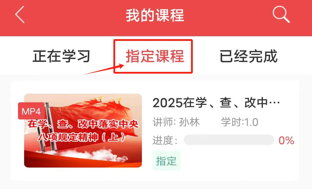 3、点击指定课程并完成该栏目下的所有课程。