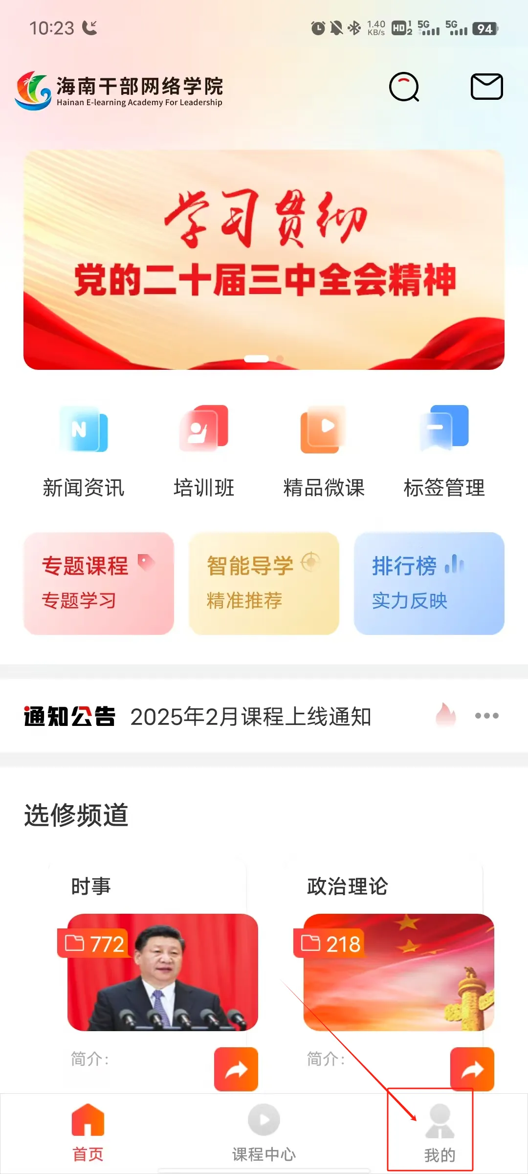 1、打开海南干部网络学院App,点击右下角我的进入个人中心。
