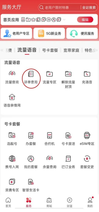 1、打开软件,登录之后,点击【服务】,然后点击【详单查询】