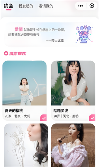 找到心仪的对象,选择约会地点,正式向TA发起邀请。