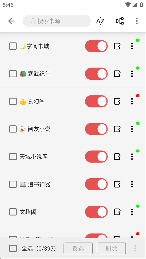 * 红点表示书源有发现,但是未启用