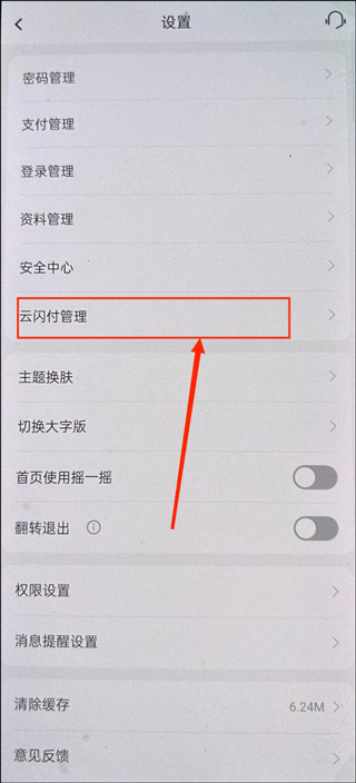 3、然后点击【云闪付管理】