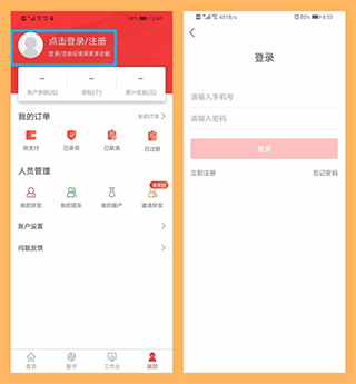 1、下载安装后打开app,点右下角的“”我的”,点击头像旁的“点击登录/注册”