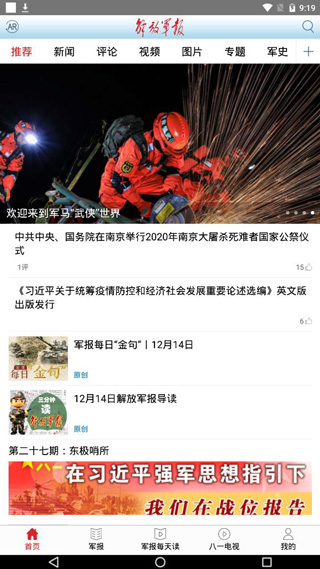 v3.2.1解放军报app是一款军事新闻资讯服务平台,它是由解放军报社推出的。该软件主要给用户们提供的就是军事爱好者的一些资讯以及阅读等一些服务的,软件为了满足广大群众的要求还提供了:文字、动静态图片、音视频、H5、VR、直播等多种播报形式来进行资讯的呈现。这方便用户更加高效的阅读到自己心仪的文章以及感兴趣的内容,软件还将这些资讯划分成为了:"独"、"锐"、"深"、"忆"、"视"五个频道,用户可以根据自己的实际情况点击进行查阅新闻,软件界面和其它新闻资讯软件一样,所以在视觉方面也是没有不适的,感兴趣的朋友们欢迎前来下载体验哦!