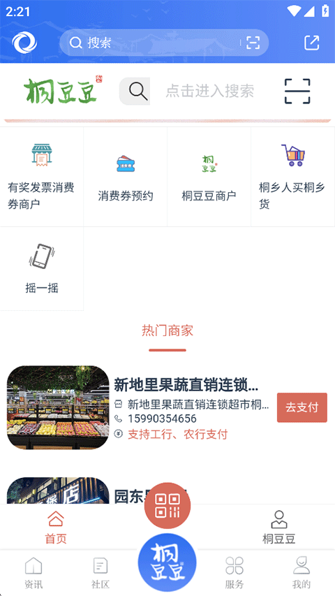 4、绑定充值钱包后还可以使用爱桐乡APP进行线下扫码支付;