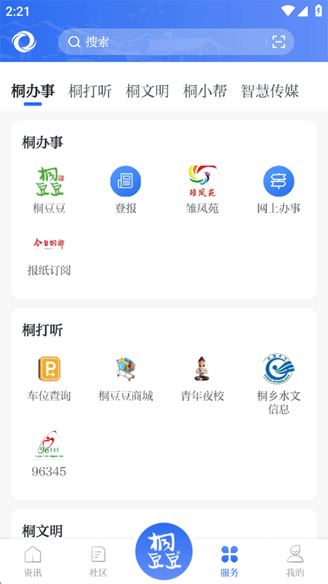 5、在服务页还聚合了桐办事、桐打听、桐文明、桐小帮以及智慧传媒等各种生活政务服务内容;