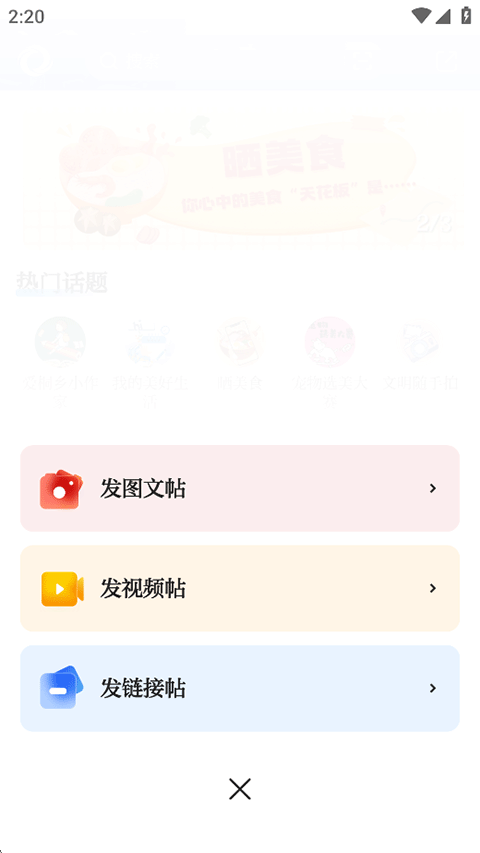 3、选择发帖类型,就可以在社区分享你的生活片段或发表你的想法;