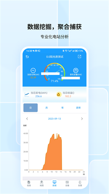 护光者app是一款手机上的光伏电站终端管理软件,使用它可以快速创建电站及设置电站信息,扫描二维码快速增加采集器,为用户提供光伏电站监控、光伏设备查看、报警、蓝牙工具、扫一扫、wifi配置、工单处理、光伏电站故障处理等功能,非常的全面和专业。而且每当遇到设备遇到问题时,直接利用该软件直接连接采集器,然后发送命令让工程师来检查问题原因,第一时间解决你的烦恼。另外,护光者app还可以更简单、更快捷对监控对象进行实时监控,数据可视化,图表简明易懂,随时随地都可通过网络多维度展示实时数据和历史数据。