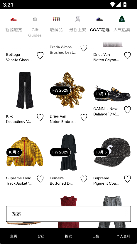 用户可以快速浏览平台精选的潮鞋、服饰与配件新品。