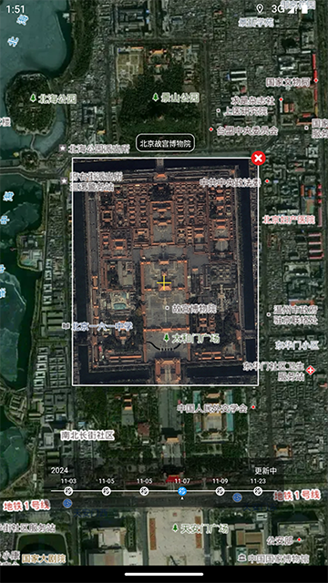 地图叠加展示特定区域的影像,通过直观时间轴轻松切换不同时间段的图像,便捷追踪变化。