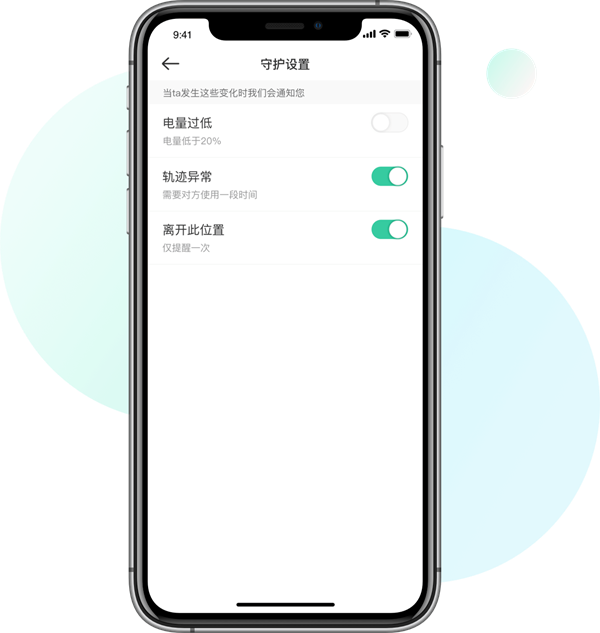 3)守护设置,ta的手机没电了?位置异常?离开某地?时刻守护统统告诉您 ;