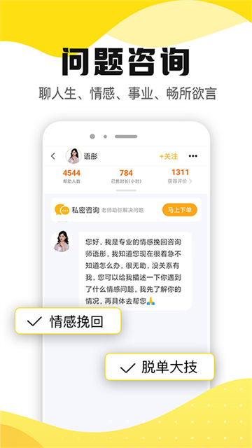 v7.7.0听芝app是一款专注于情感咨询的应用软件,它能够帮助用户解决恋爱脱单、分手挽回、情感经营、婚姻幸福、家庭关系、聊天技巧、情感修复、两性指南、个人魅力成长提升等方面的问题,无论你是单身还是已婚,无论你是初恋还是已经经历过多次恋爱,都能为你提供专业的情感咨询服务,帮助你解决情感问题,让你的生活更加幸福美满。