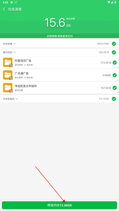 2、等待垃圾扫描完成后,单击释放内存;