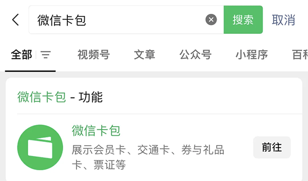 想要知道自己的账户里有哪些卡券,可以输入“微信卡包”,这样就不会错过那些即将过期的或者自己没注意的优惠券啦;