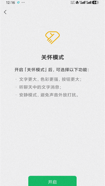 5、此时,会显示已开启,这个时候我们的微信就是老年版的大字体了;