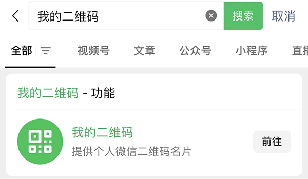 新朋友想扫码加你微信,可以输入“我的二维码”,直接跳转,再也不怕找不到二维码了;