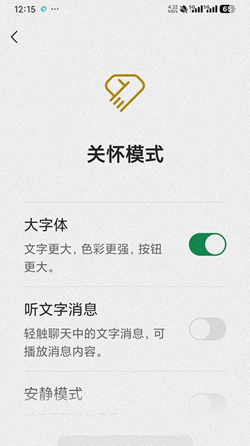 页面东西太多,看得眼花缭乱,输入“关怀模式设置”,界面就更简洁,更简单易读了;