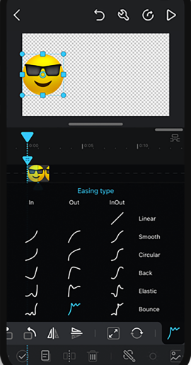 使用缓动函数控制过渡行为:线性、平滑、圆形、回弹、弹性、弹跳。