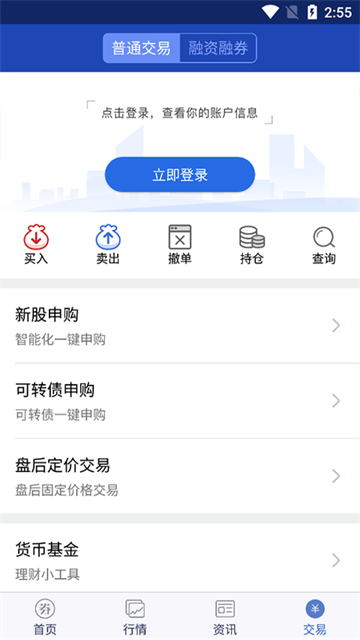 兼具普通交易和闪电交易,普通股票包括股票买卖、新股申购、基金申赎、债券回购、银证转账、账号查询、融资融券等交易功能满足您的投资所需;闪电交易,用可在个股分时页快捷下单,节省超过30%的下单时间,交易快人一步。