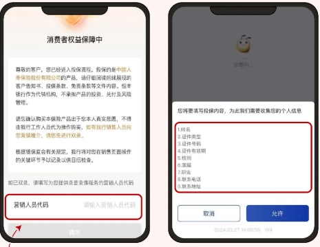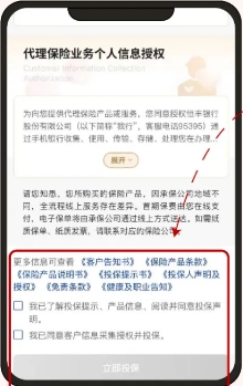 客户阅读“代理保险业务个人信息授权”立即投保