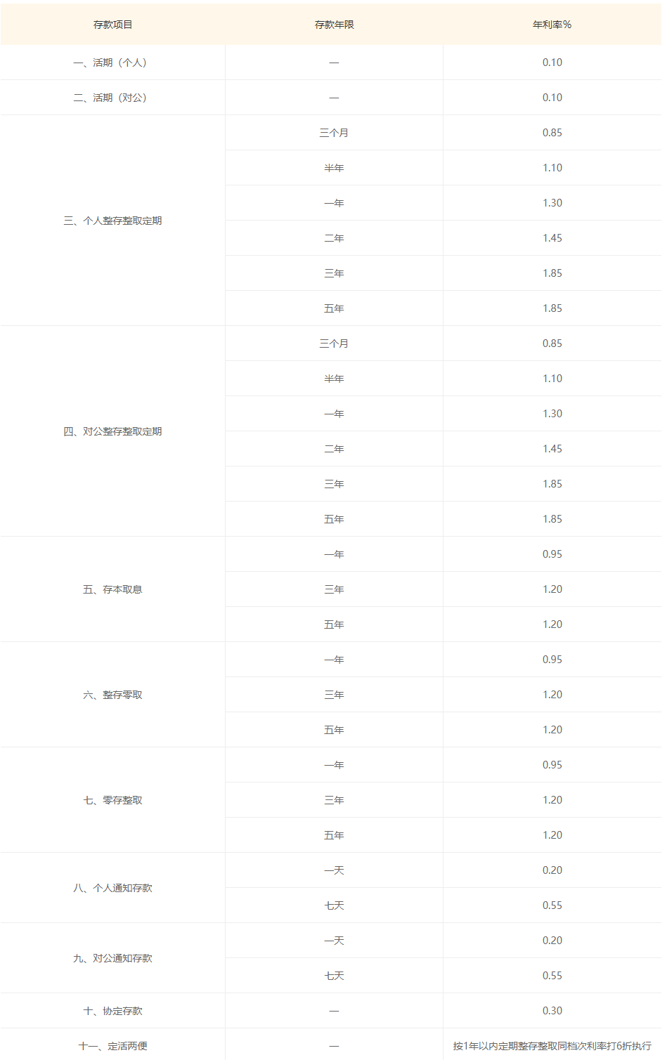 人民币存款利率
