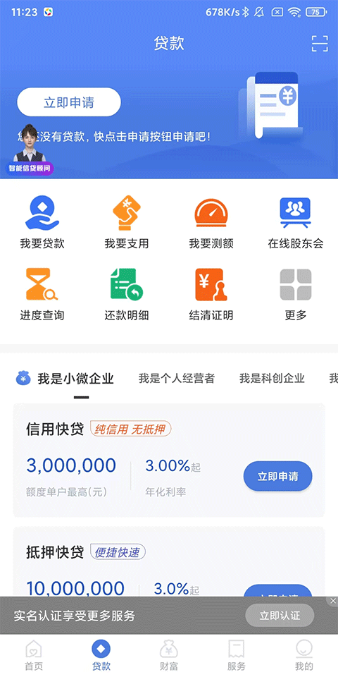 2、贷款:个人经营者、小微企业、科创企业等都可以在此申请贷款服务,信用快贷、抵押快贷,多样选择;