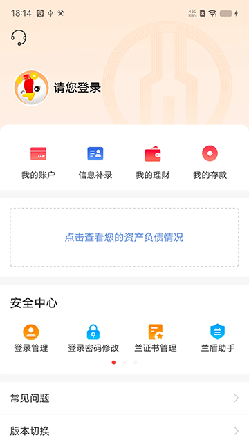 可查看我的账户、理财、存款等,还有安全中心相关功能及常见问题。