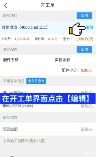 5、在开工单界面中点击编辑;