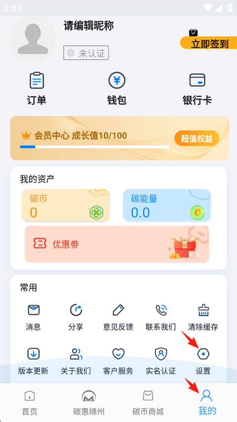 1、打开绵州通APP,点击我的-常用-设置;