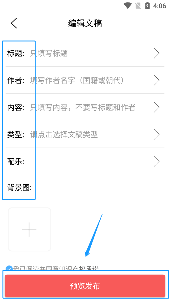 4、依次填写如下内容,填好之后点击预览发布