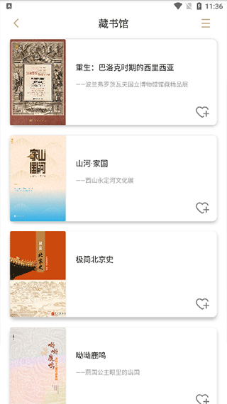 1、在首页来回滑动切换功能,有藏书馆、百宝阁、展览集、互动区四大板块