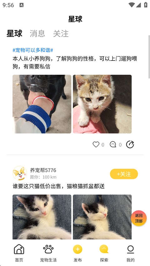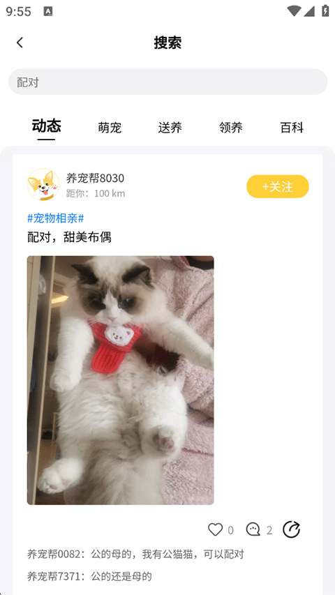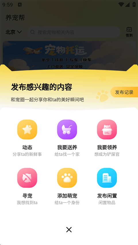 对于个人宠物所生下的小崽子,可以在圈子发布赠送领养信息。