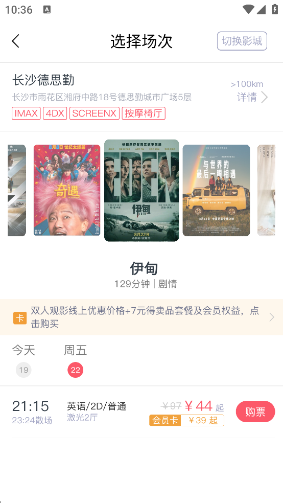 4、优选专属黄金座位,一键挑选中心观影位