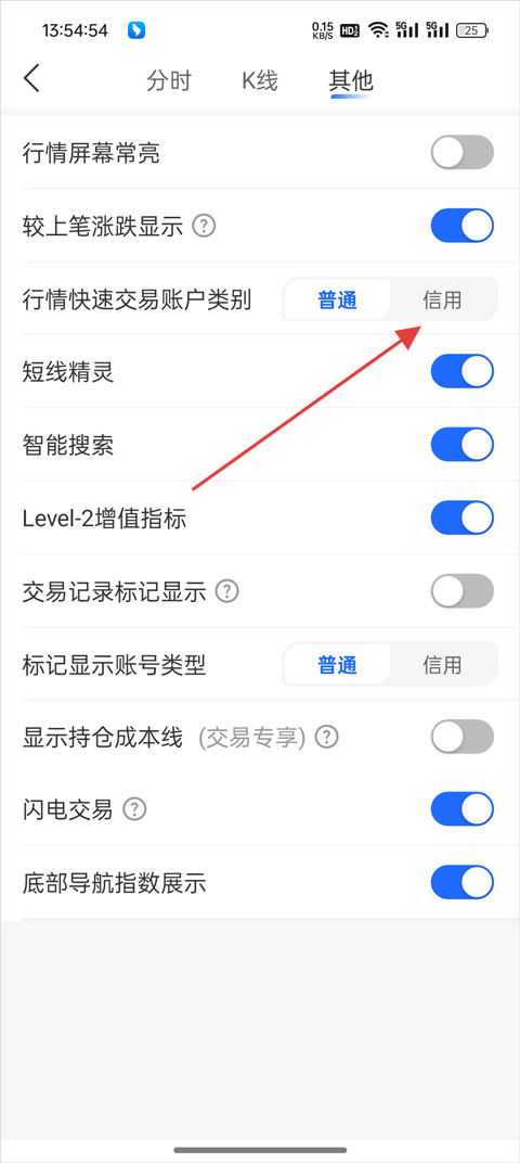 5、找到【行情快速交易账户类别】,点击其中的【信用】按钮。