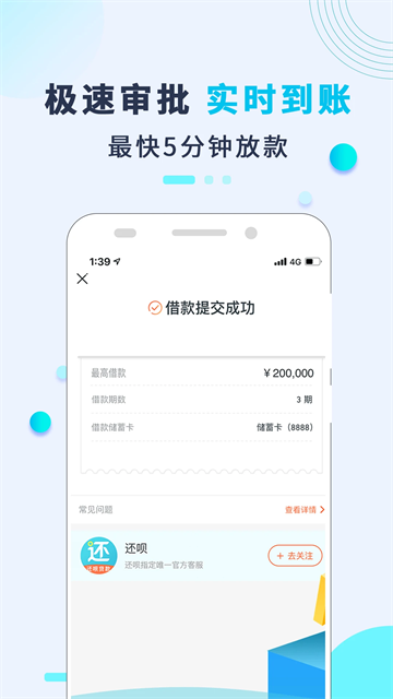 还呗作为在线消费信贷平台,坚持亲近用户的理念。为提升用户使用体验,还呗在坚持细分服务、精准服务的基础上,更加强调高效便利性,从客户提交申请到放款,全流程采用纯线上操作方式,免去了传统信贷模式下的线下申请、提交资料、人工审核等复杂流程,帮助用户节省大量的时间成本。