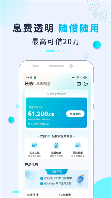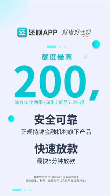 还呗App是一款基于生活消费多场景的互联网金融信贷服务软件,截止目前注册用户已超过6500万,为超过1000万用户提供合理信贷服务。该软件主要面向年轻人提供账单分期、信用分期以及现金分期和分期商城等多种服务,让用户可以在多种消费场景下,享受更加灵活、便捷、高效的分期服务,其中分期贷最高额度可高达20W,综合年化利率(单利)低至8.99%起,最多可分至12期还清,减轻用户还款压力,且申请所需的所有用户信息,均会进行加密保证用户信息安全,为用户安全保驾护航,有需要的用户可以在本站下载开始使用。