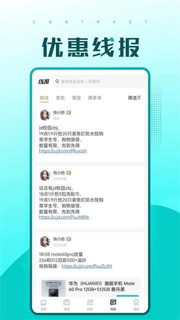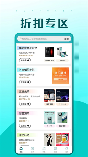 快快抢聚合了淘宝、天猫、拼多多、京东、苏宁易购、酒仙网、聚划算等主流电商秒杀抢购商品,飞天茅台,热门手机,潮鞋潮玩,一网打尽!
