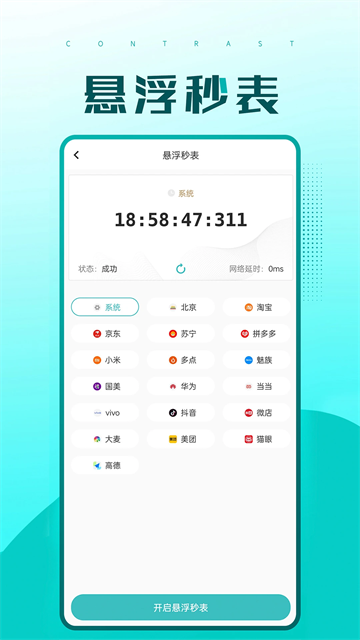 悬浮时间可启动浮窗,使时间浮窗可以悬浮在桌面以及任意App上,拥有丰富时间校准功能,还可以进行网络测速,随时掌握您设备的网速。