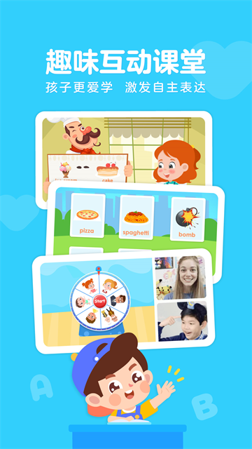 伴鱼精心设计了新奇有趣的绘本讲读、小组任务、角色扮演、目标挑战等丰富的课程互动环节,引导孩子与外教实时互动,强化口语能力。